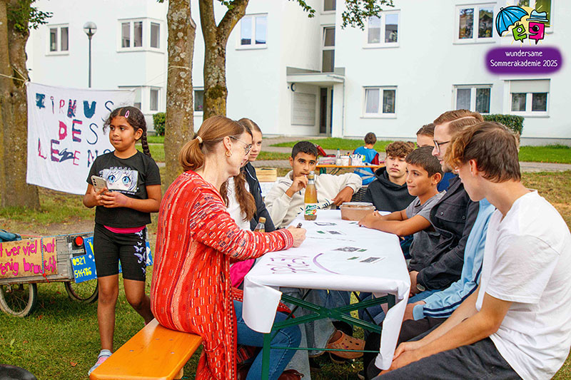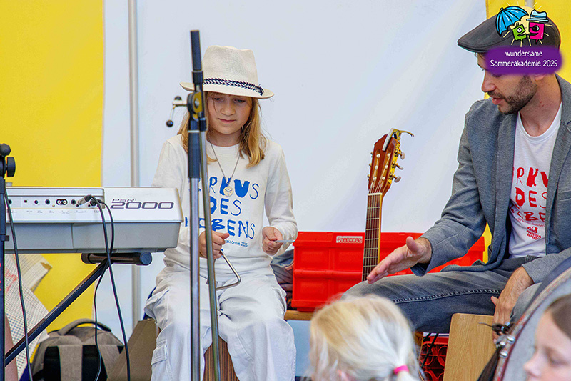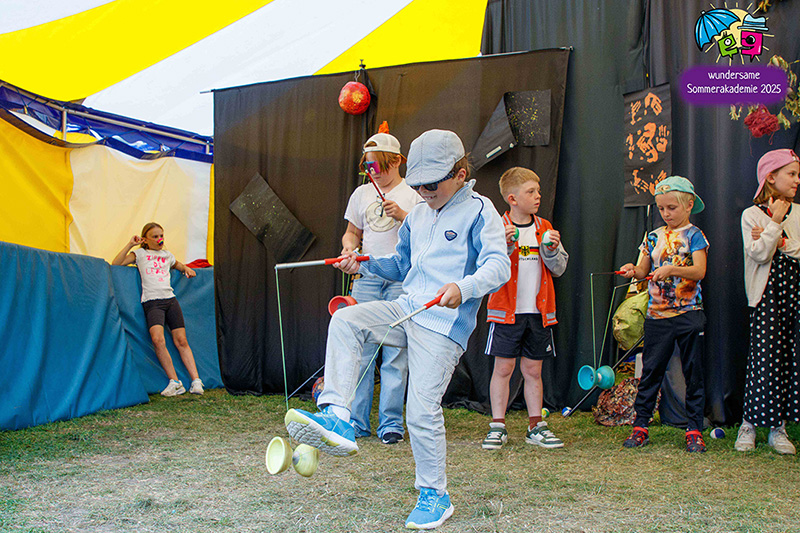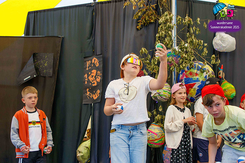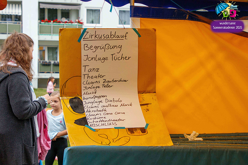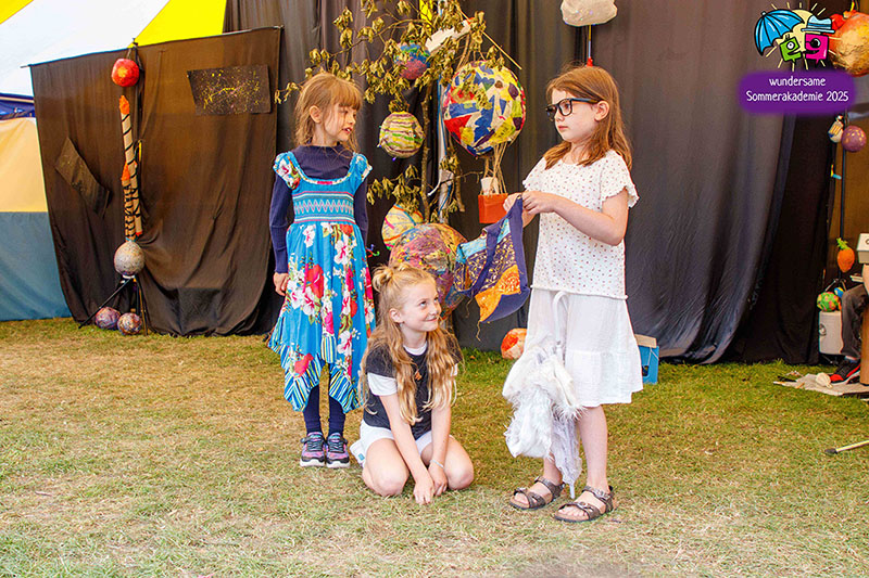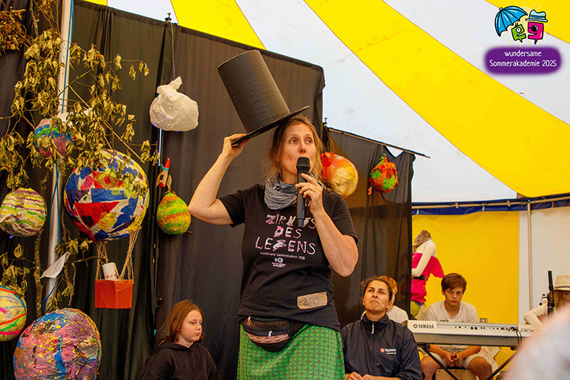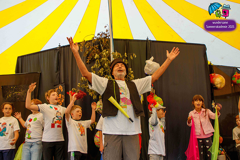 Der Höhepunkt war die Abschlusspräsentation unserer Sommerakademie „Der Zirkus des Lebens“. Zwei Wochen lang hatten Kinder und Jugendliche zwischen sechs und achtzehn Jahren in verschiedenen Workshops gespielt, geprobt, gebaut, genäht, gesungen und musiziert. Auf der Bühne im Zelt wurden diese vielen einzelnen Fäden zu einem großen Ganzen verwoben. Da waren bewegende Akrobatiknummern, selbstgestaltete Puppen und Schattentheaterfiguren, fantasievolle Kostüme und Bühnenbilder, Lichtinstallationen, Clownerie voller Witz und eine Musikgruppe, die die Szenen live begleitet hat. Alles griff ineinander, so wie es im Zirkus üblich ist, und machte spürbar, wie viel Kraft im gemeinsamen Gestalten liegt.