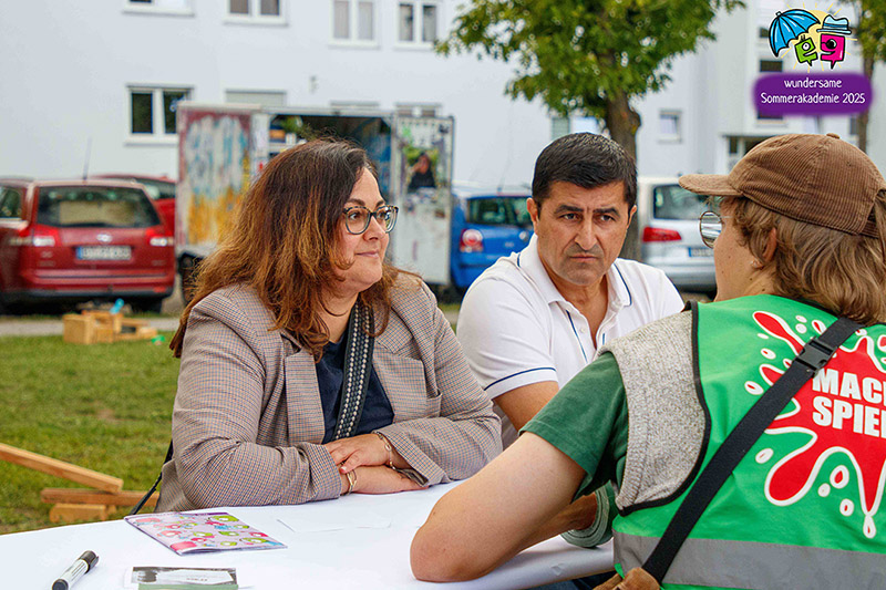 Nach der künstlerischen Präsentation ging es in den Dialog mit der Nachbarschaft und der Politik. In einem offenen Format sammelten wir Ideen zur Weiterentwicklung des Stadtteils. Dabei ging es um Wünsche wie einen Treffpunkt für die Menschen in der Burg oder um mehr Schattenplätze auf dem Spielplatz. Für uns war es wichtig, dass hier nicht nur geredet, sondern wirklich zugehört wurde und ein Austausch auf Augenhöhe möglich war.