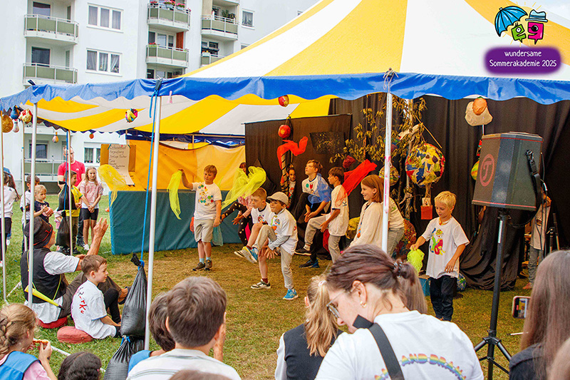 Zwischen den Übungsphasen sorgten spielerische Aktivitäten für Energie, Ausgleich und Gemeinschaftsgefühl – etwa durch Bewegungsspiele wie „Reise nach Amerika“ oder „Monsterspiel“. Die Woche endete mit einer gelungenen Show im Zirkuszelt, bei der die Kinder mit großer Begeisterung präsentierten, was sie gemeinsam erarbeitet hatten.